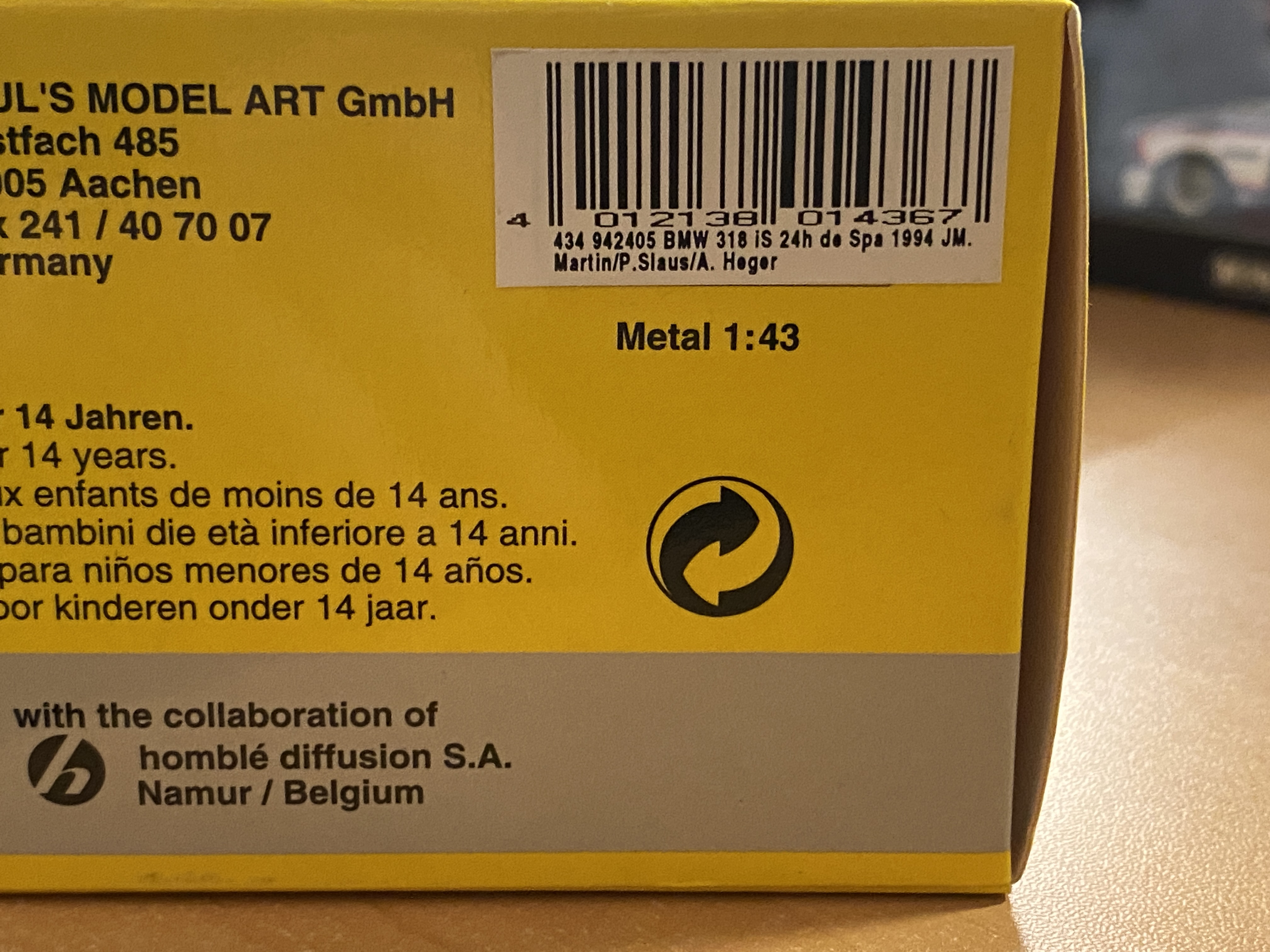 Titre : BMW 318IS - 24H SPA 1994 - M. MARTIN / P. SLAUS / A. HEGER Un seul exemplaire neuf boite d'origine